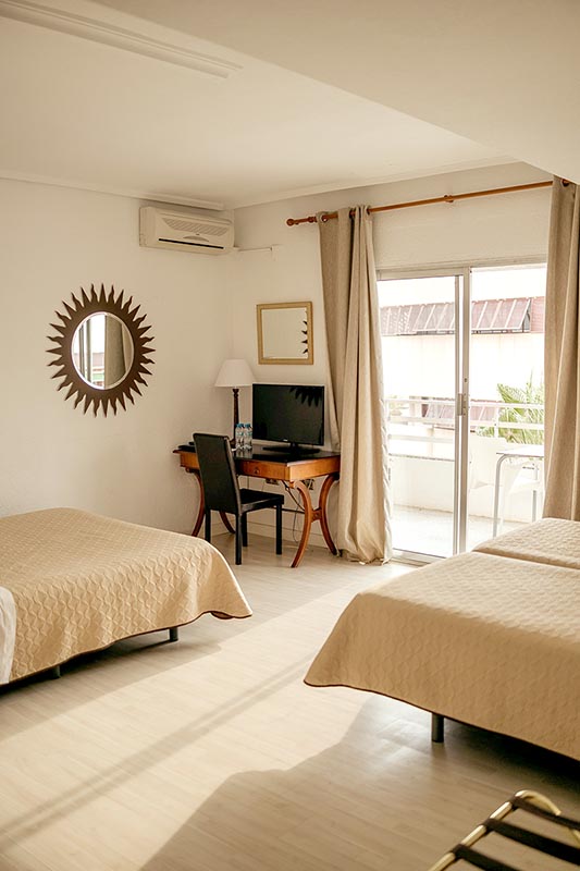 Son estancias con una decoración clásica, basada en tonos madera. La luminosidad es estupenda y sus prestaciones son propias de los mejores hoteles del Mediterráneo. Disponen de televisión LCD de 32 pulgadas. Asimismo, camas muy cómodas de 150-180×200.